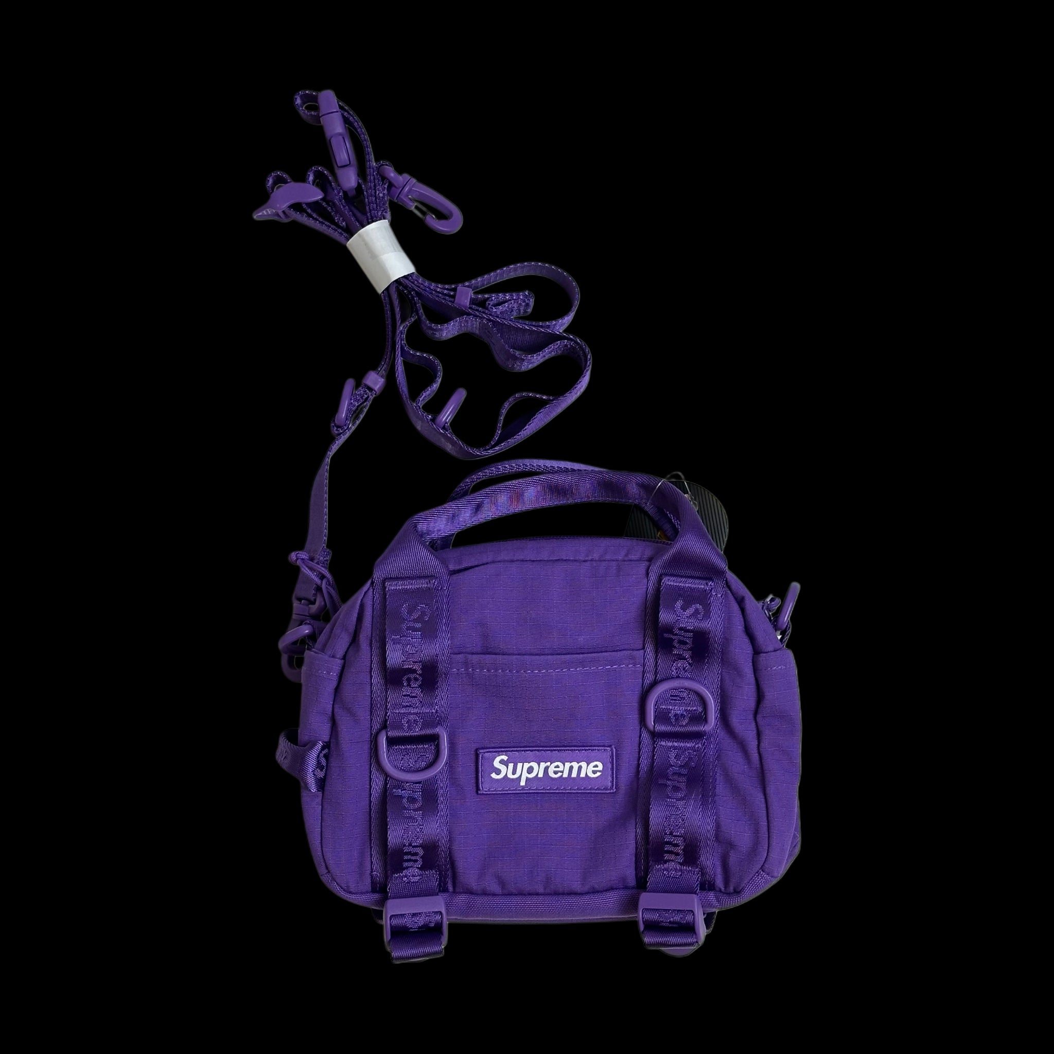 jacquard logo utility webbing with d-ring tabs on front back sides & shoulder strap