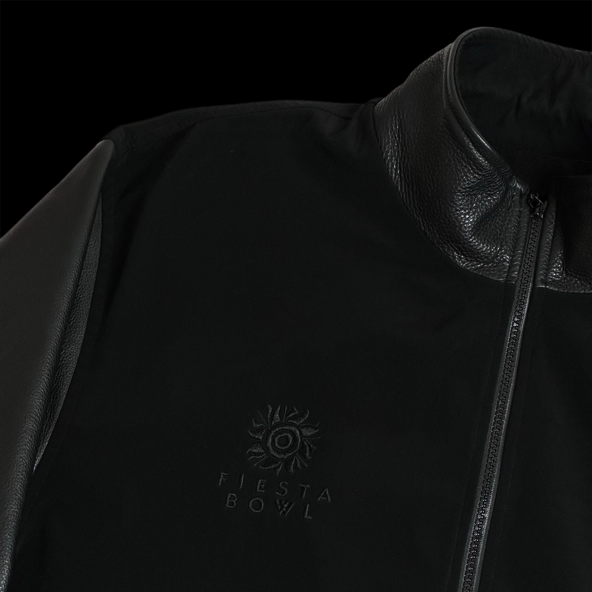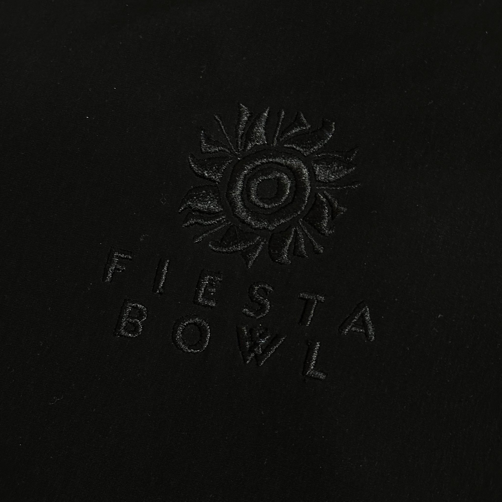 tonal black theme with cobranded embroideries
